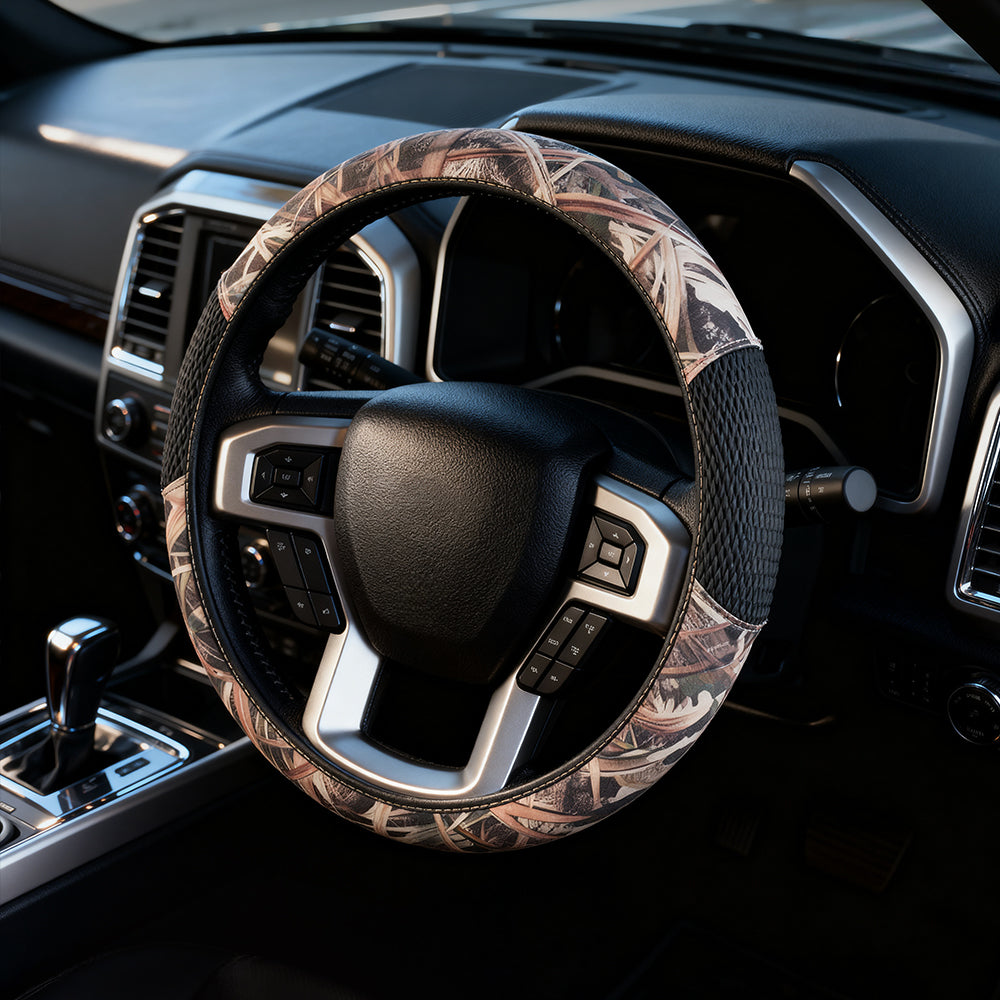 Protect your hands and steering wheel in style with this Mossy Oak Shadow Grass Steering Wheel Cover.